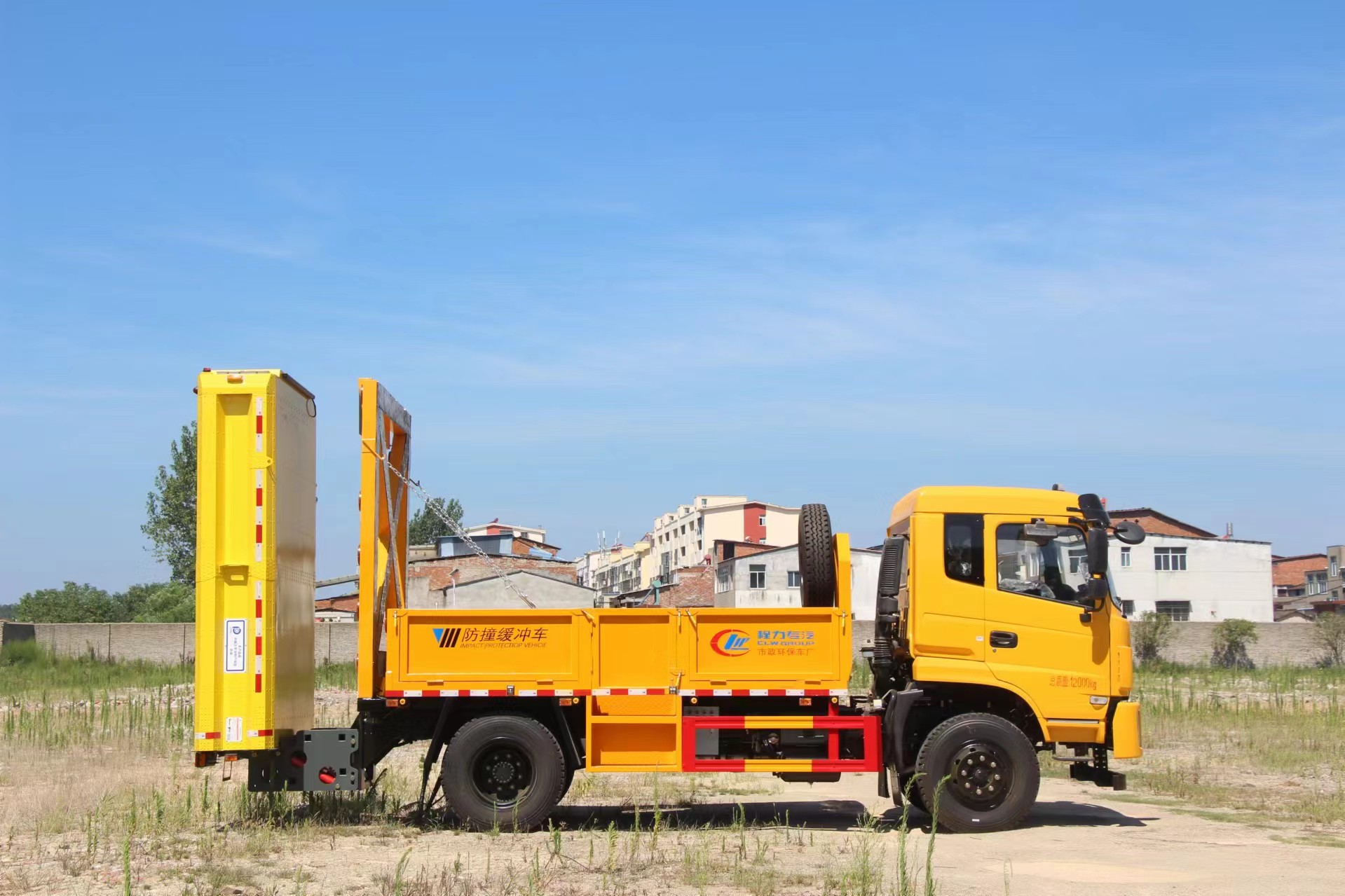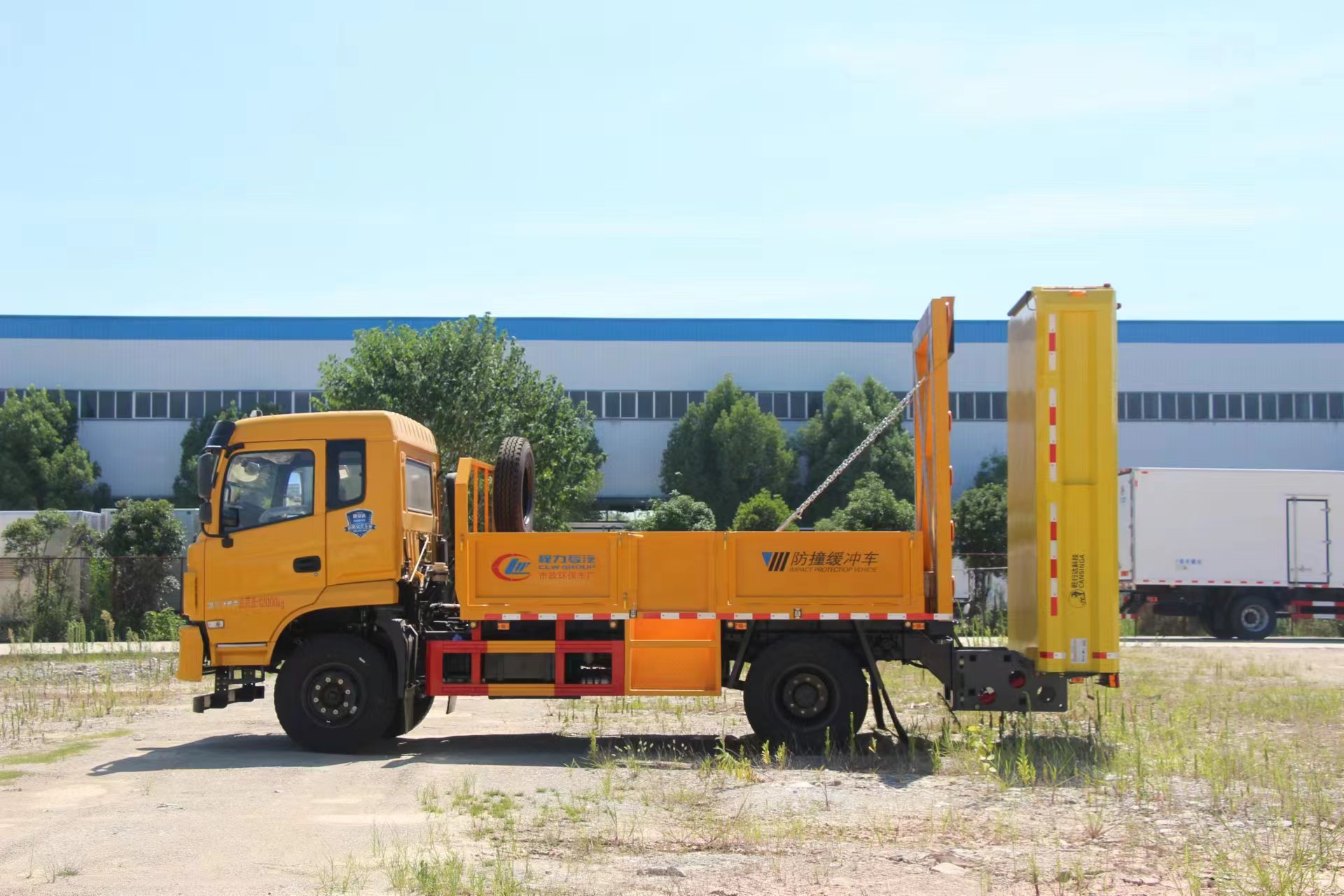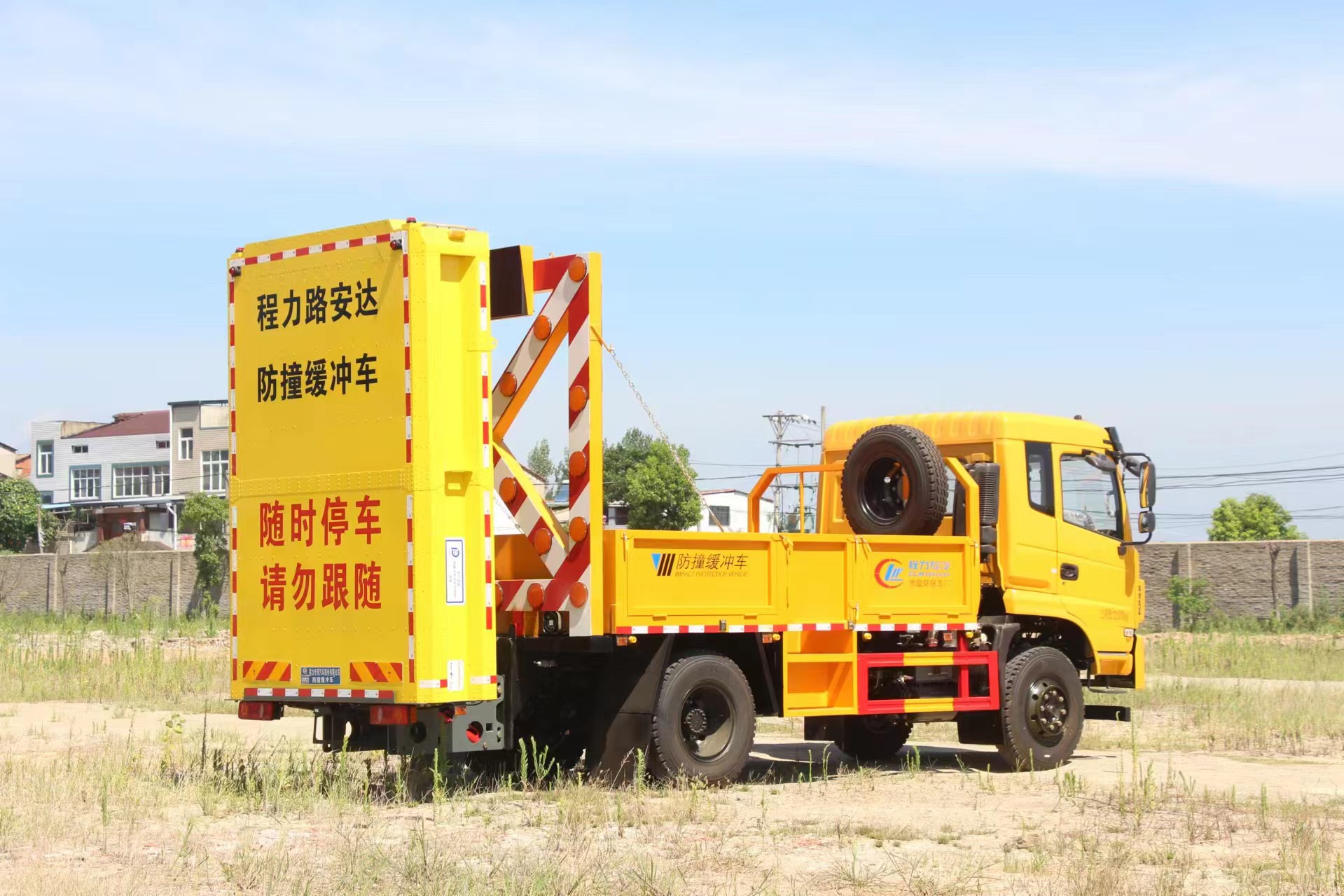 上裝配置 采用Q235國(guó)標(biāo)邊3mm底板花紋板4mm厚,箱體后部防撞緩沖模塊包采用國(guó)際知名技術(shù)產(chǎn)品100E防撞緩 沖模塊,防撞緩沖吸能模塊主要由車載防撞緩沖墊和導(dǎo)向標(biāo)志架組成,充當(dāng)施工作業(yè)車輛后方的緩沖衛(wèi)士。 如若發(fā)生追尾事故,能夠在肇事車輛和前方施工作業(yè)區(qū)域之間構(gòu)建一個(gè)緩沖區(qū)域,通過(guò)機(jī)具結(jié)構(gòu)變形吸收撞 擊的能量,最大限度地降低被保護(hù)人員及設(shè)備遭到碰撞的幾率。高性能液壓系統(tǒng),可實(shí)現(xiàn)快速舉升和落下操 作,方便設(shè)備運(yùn)輸轉(zhuǎn)場(chǎng),一鍵啟動(dòng)功能,舉升和落下防撞裝置,當(dāng)防撞裝置未完全落下到工作位置或舉升到 垂直運(yùn)輸位置時(shí),會(huì)有自動(dòng)警告音提示。