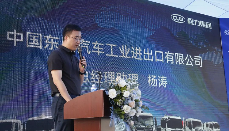 中國(guó)東風(fēng)汽車工業(yè)進(jìn)出口有限公司總經(jīng)理助理?xiàng)顫诨顒?dòng)中,做了重要講話。他強(qiáng)調(diào),首先要感謝程力集團(tuán)一直以來,與東風(fēng)公司全面戰(zhàn)略合作和大力支持,并向參加推薦會(huì)的來賓與銷售經(jīng)理表示誠(chéng)摯的問候。