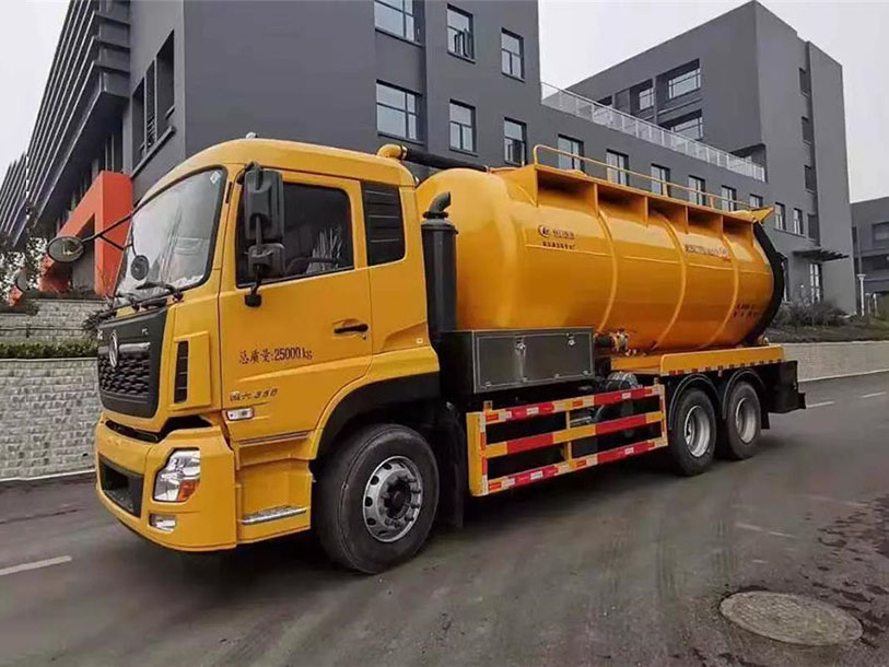 罐體容積22立方左右,清水罐5立方,其余為污水,罐體8mm厚,封頭8mm厚,舉升頂為自卸中置頂,副駕駛一側清水罐和污水罐用DN100球閥互通,另罐頂裝一個互通,副駕駛一側按照公告圖片安裝爬梯;清水罐:品浮330高壓泵,罐頂散水罐口一個,帶爬梯,高壓管100米22號高壓管,尾部液壓卷盤,左右各裝一個消防栓進水口,清水罐裝兩側各一個小球閥,罐底裝一個DN65排水閥,吸污罐:一個散水罐口,罐體內部鋪1.2米不銹鋼板,罐內爬梯,罐體內部防浪板加固,水循環泵水箱為碳鋼材質,副駕側排150鋁合金球閥,吸污罐尾部不開大蓋,開600小蓋排污口,尾部600小蓋左側一個150排污口,右側一個100的進料口,一個100鋁合金排污口,側邊一個100排清水,罐體尾部兩側工具箱,1根10米吸污管,箭頭燈,手動油門。