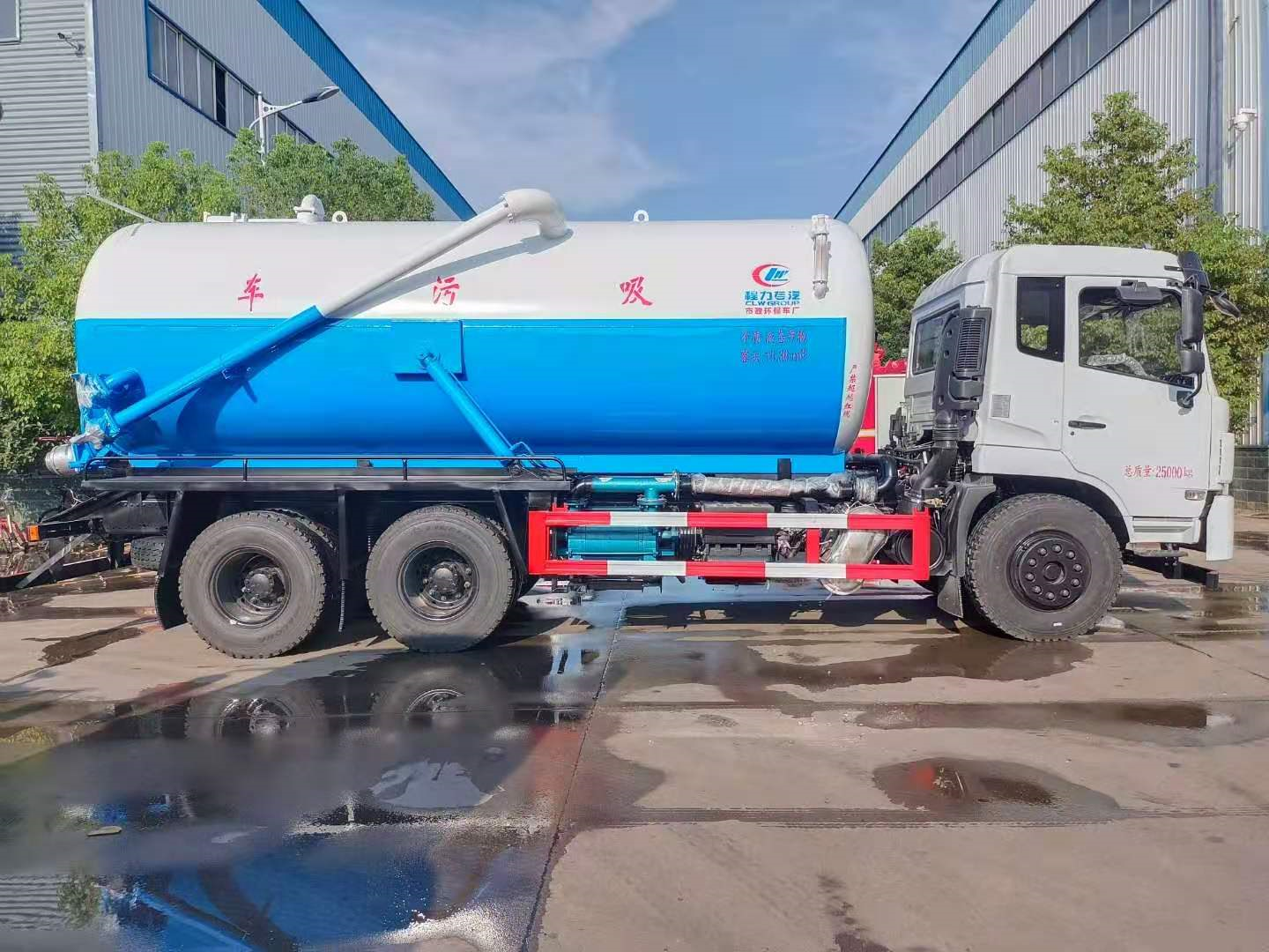 上裝配置 污罐:Q235武鋼6MM厚碳鋼板,標配采用億豐2BE-204水循環泵,防溢閥,視糞管,配一根8米吸污管,罐體封頭一次壓鑄成型、罐體帶舉升,后蓋為液壓開啟。罐內污物可通過后蓋直接傾倒,具有真空度高、噸位大、效率高、用途更廣泛的特點。