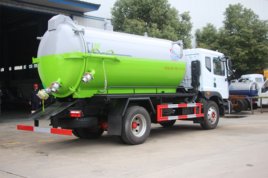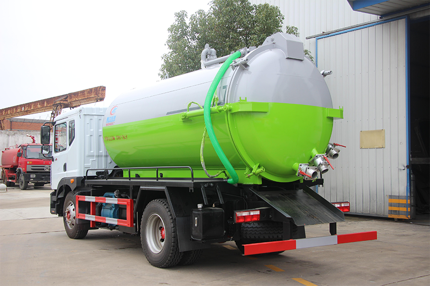 上裝配置 污罐:Q235武鋼6MM厚碳鋼板,標配采用億豐SK-12水循環(huán)泵。防溢閥,視糞管,配一根8米吸污管,罐體封頭一次壓鑄成型、罐體帶舉升,后蓋為液壓開啟。罐內(nèi)污物可通過后蓋直接傾倒,具有真空度高、噸位大、效率高、用途更廣泛的特點。